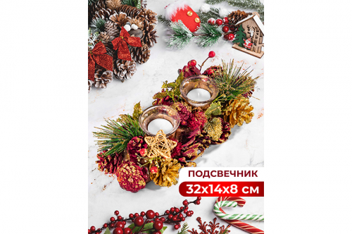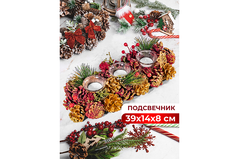 Новогоднее украшение подсвечник 39*14*8 см на 3 свечи, прямоугольный