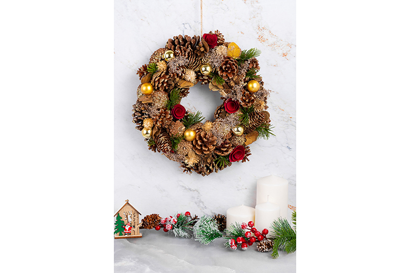 Декоративный венок 34х34х8 см сможет стать украшением вашего интерьера на Новый год Дракона 2024 или Рождество. Елка, подарки, огни гирлянд, метель за окном, теплый камин и праздничный венок на двери - вот что хочется увидеть, когда думаешь про зимний праздник. Украсьте свой дом интерьерным декором, чтобы создать новогоднюю или рождественскую атмосферу во всех деталях! Сосновые шишки, пушистые еловые ветки, искусственные ягоды и шары - выберите венок, который понравится вам больше всего! Веточки, шишки и все содержимое венка закреплено на прочной основе. Венок можно разместить на столе или повесить над входной дверью. Тогда праздничное настроение придет намного быстрее и останется намного дольше. /
