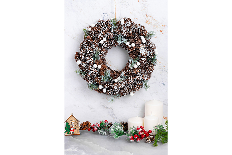Венок “Снежный лес” станет идеальным украшением на Новый год и Рождество. Размер изделия – 35х35х8 см. Необычное декоративное изделие с настоящими сосновыми шишками и пушистыми еловыми ветками подарит вам праздничное настроение. Поставьте его на полку, стол или подоконник, оперев о стенку или окно. Благодаря прочной петельке его можно повесить на стену, дверь или дверцу шкафа, чтобы привнести в дом уют и сказочность. Прочное основание обеспечит долговечность изделия. Венок найдёт место в любой части вашего дома и украсит интерьер. Используйте его для создания тематических декоративных композиций, чтобы всецело погрузиться в атмосферу зимнего волшебства. Это отличный подарок на Новый год и Рождество для семьи, друзей и коллег. /