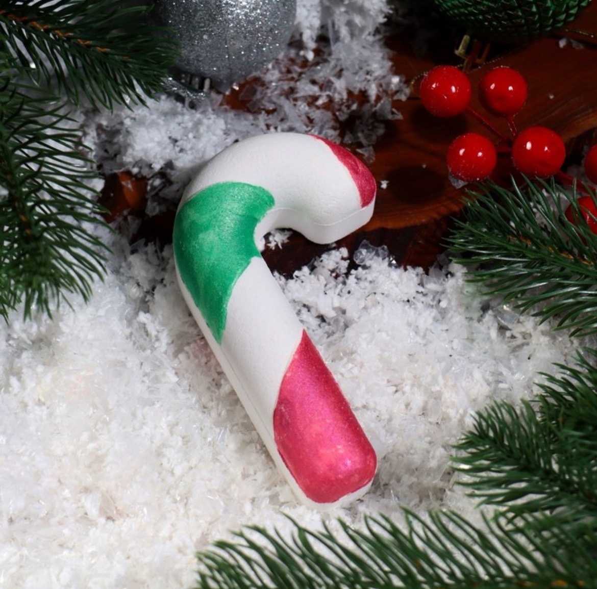 Новогодняя бомбочка для ванны «Леденец», 100 гр. - это идеальное дополнение для создания волшебной атмосферы во время праздничного сезона.