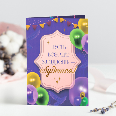 Открытка на 4 шоколадки "Пусть всё, что загадаешь - сбудется!"