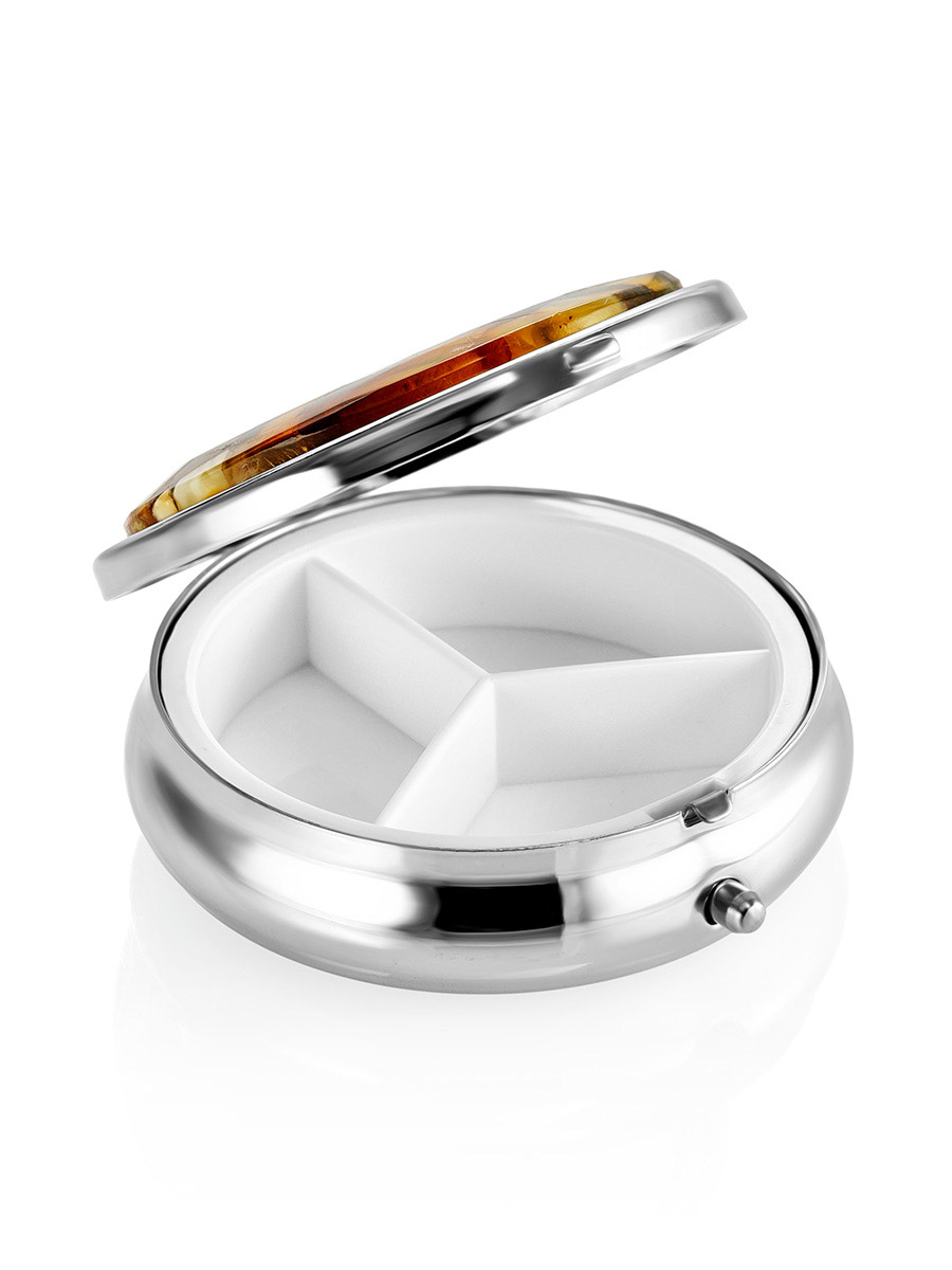 Органайзер для таблеток на три отделения, украшенный живописной янтарной мозаикой