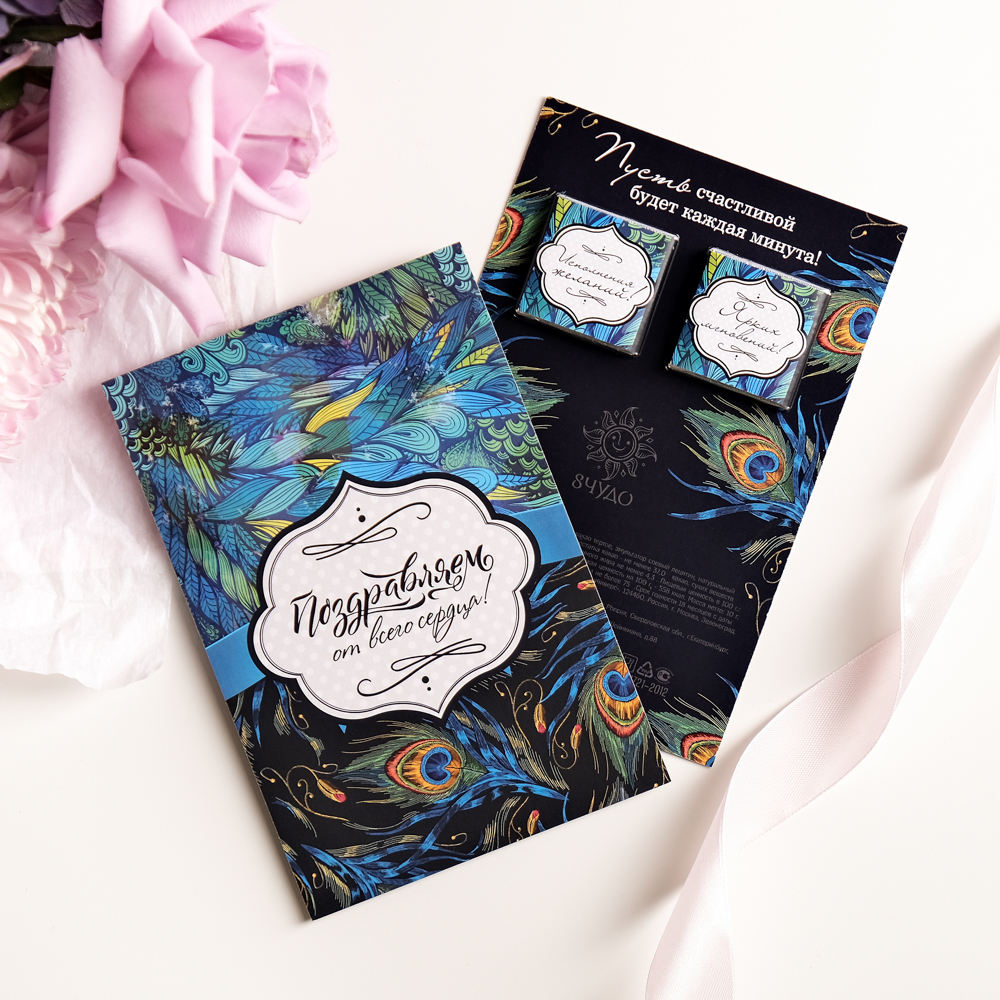 Открытка 2 шоколадки "Поздравляем от всего сердца" матовая