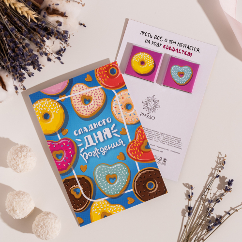 На обороте открытки - 2 шоколадки (вес каждой шоколадки: 5 г., размер: 31 х 31 мм.)