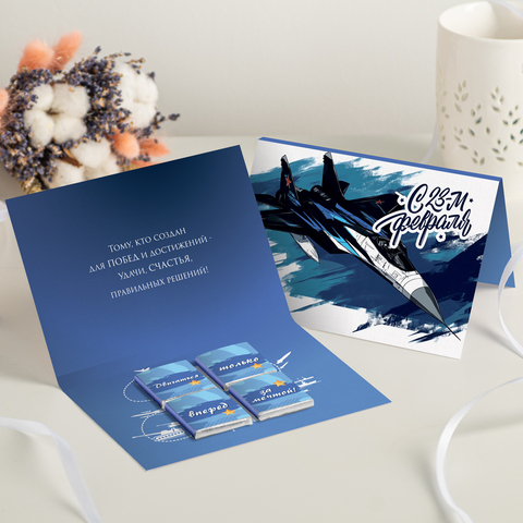 Открытка 4 шоколадки "23 февраля (самолёт на синем фоне)"