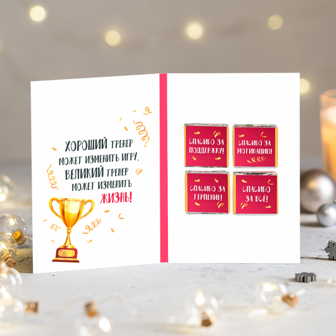 Открытка 4 шоколадки "Лучшему тренеру"