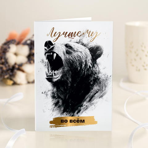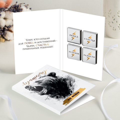 Открытка 4 шоколадки "Лучшему во всём (медведь)"