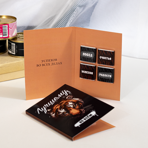 Открытка 4 шоколадки "Лучшему во всём" (тигр)