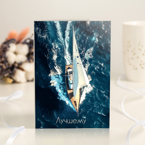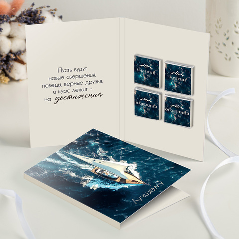 Открытка 4 шоколадки "Лучшему (яхта в море)"
