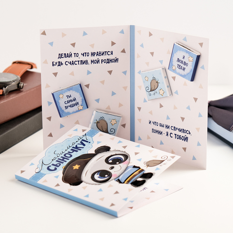 Открытка 4 шоколадки "Любимому сыночку (панда)"