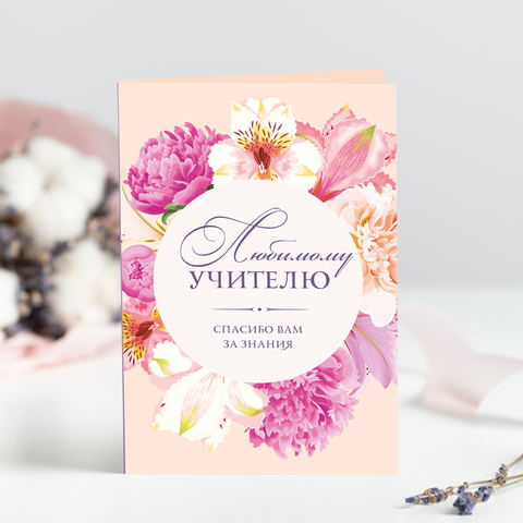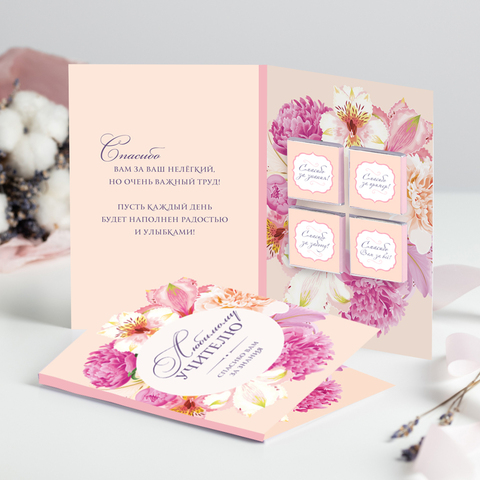 Открытка 4 шоколадки "Любимому учителю (цветы)"