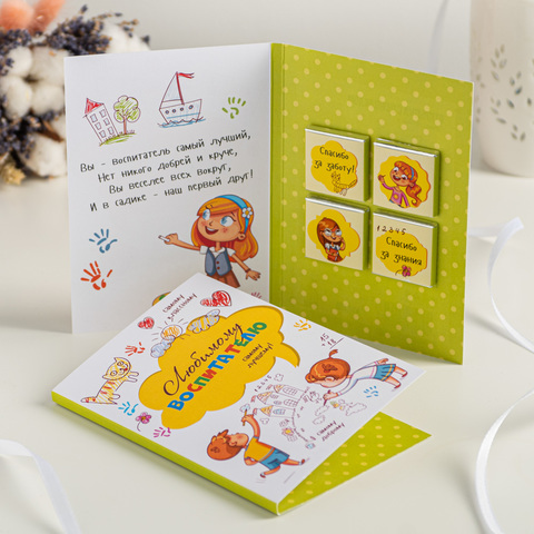 Открытка 4 шоколадки "Любимому воспитателю"