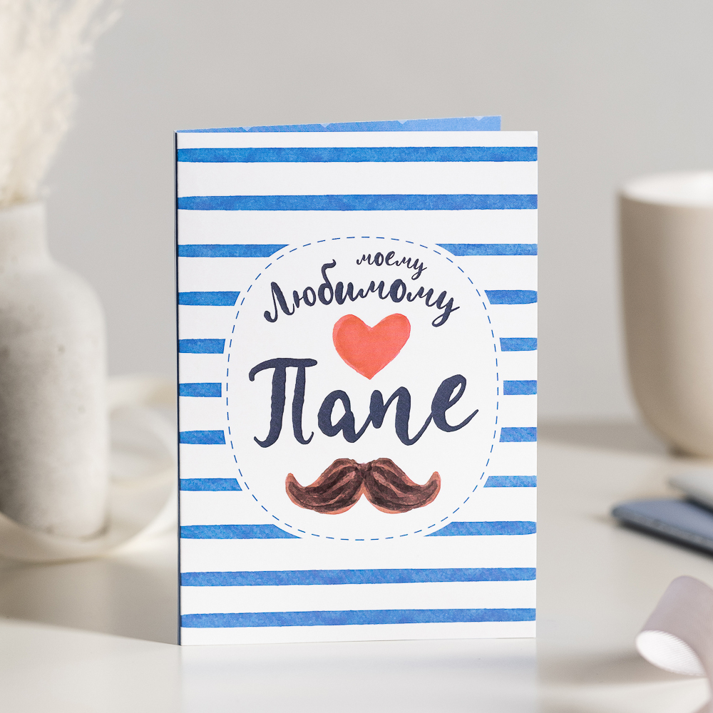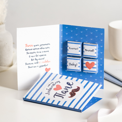Открытка 4 шоколадки "Моему любимому папе (синие полосы на белом)"
