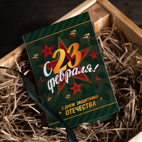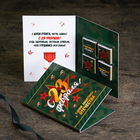 Открытка 4 шоколадки "С 23 февраля, звезда на зеленом камуфляже"