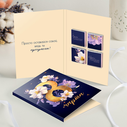 Открытка 4 шоколадки "С 8 марта! (фиолетовая тёмная)"
