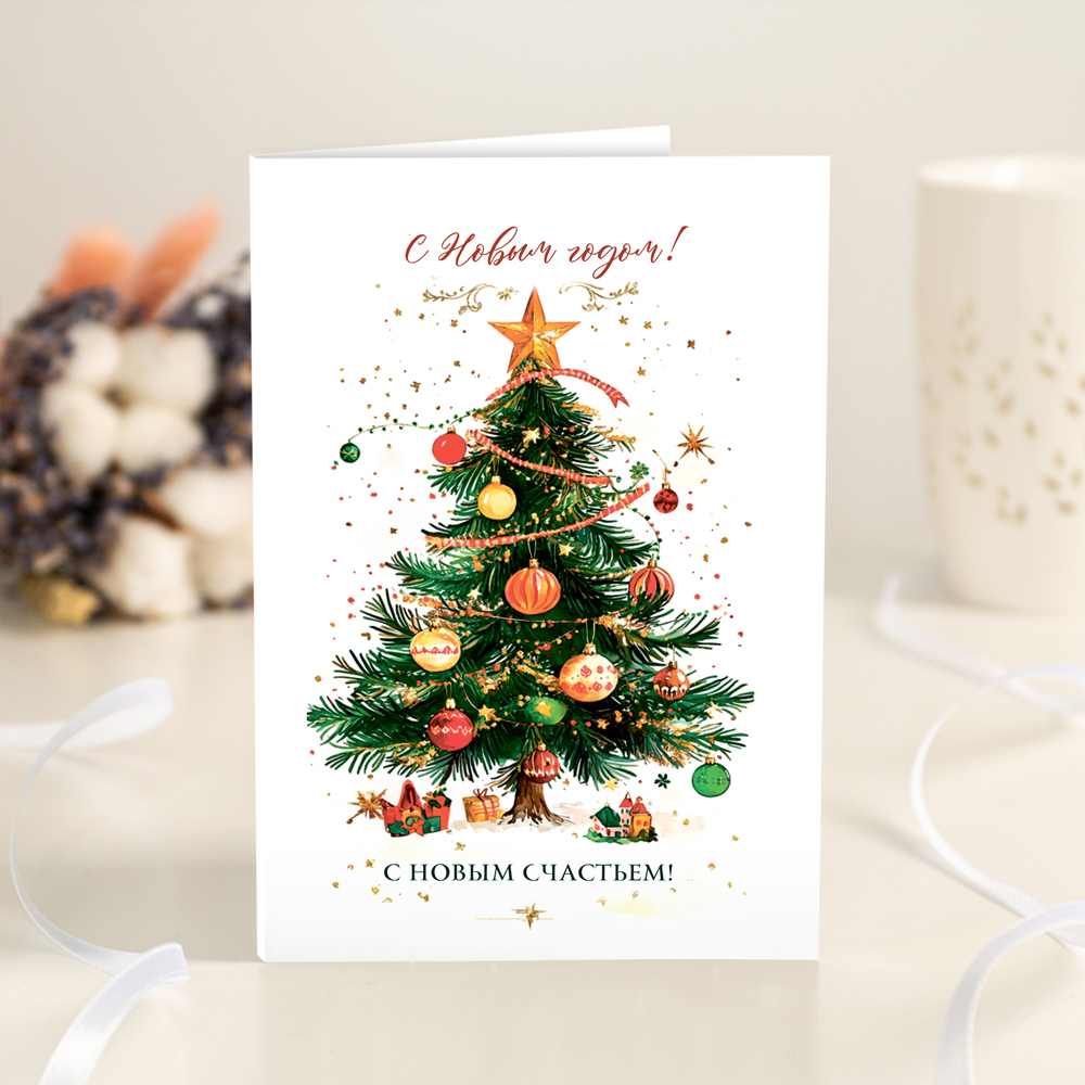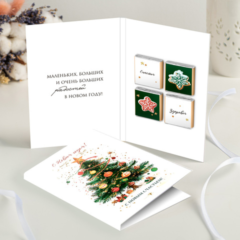 Открытка 4 шоколадки "С Новым годом! (белая с ёлкой)"