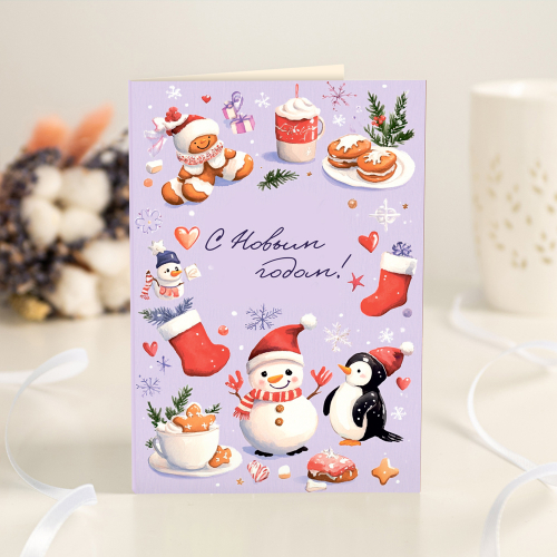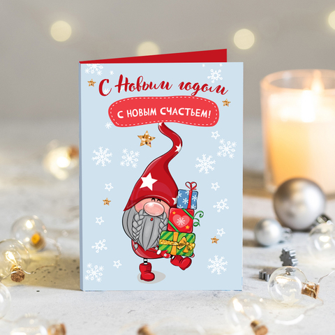 Открытка 4 шоколадки "С Новым годом, с новым счастьем!" (гномик)