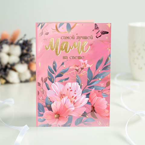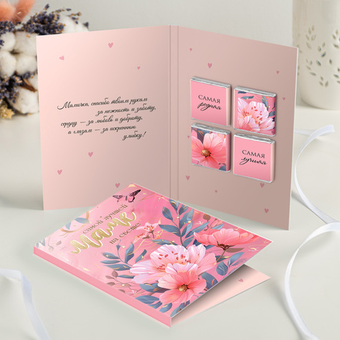 Открытка 4 шоколадки "Самой лучшей маме на свете (розовые цветы)"