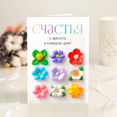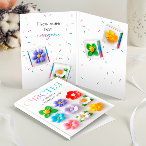 Открытка 4 шоколадки "Счастья и яркости в каждом дне"