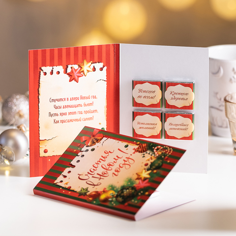 Открытка 4 шоколадки "Счастья в новом году (красно-зеленая)"