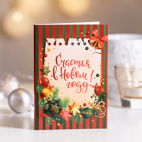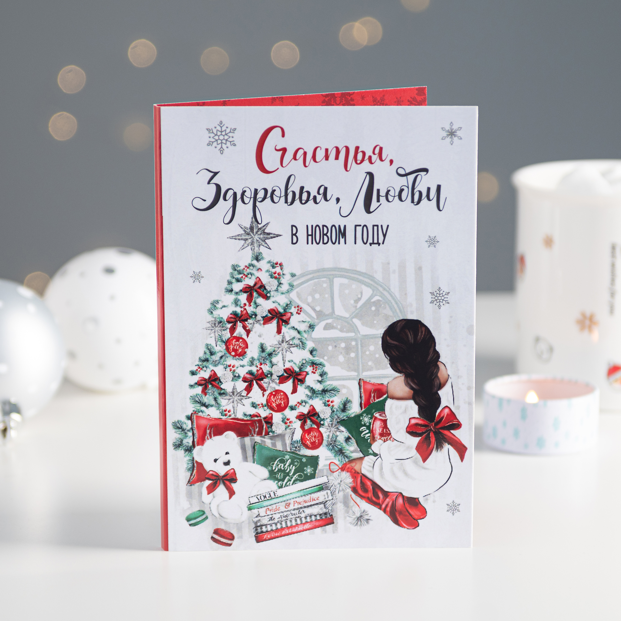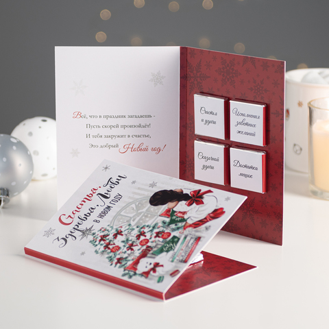 Открытка 4 шоколадки "Счастья, здоровья, любви в Новом году!" (серая)