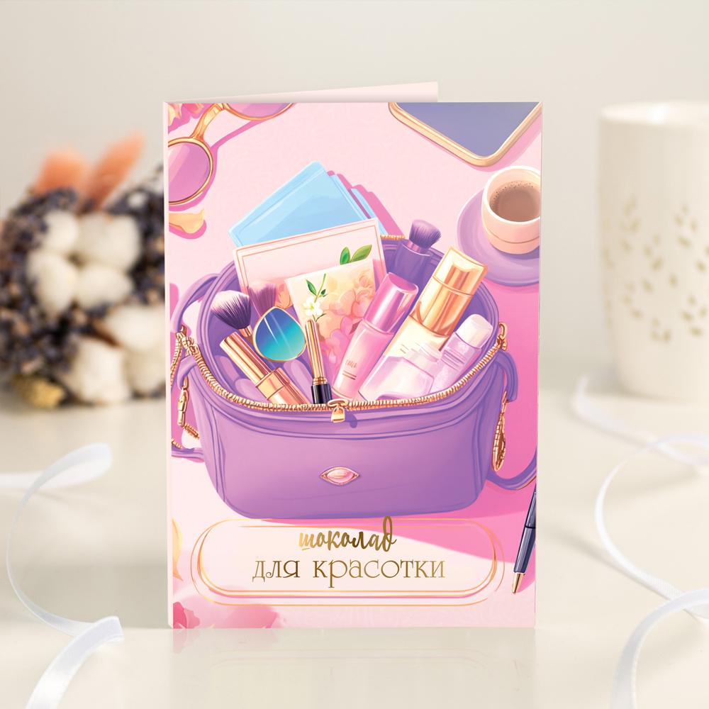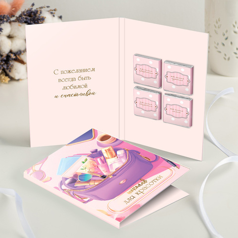 Открытка 4 шоколадки "Шоколад для красотки (косметичка)"