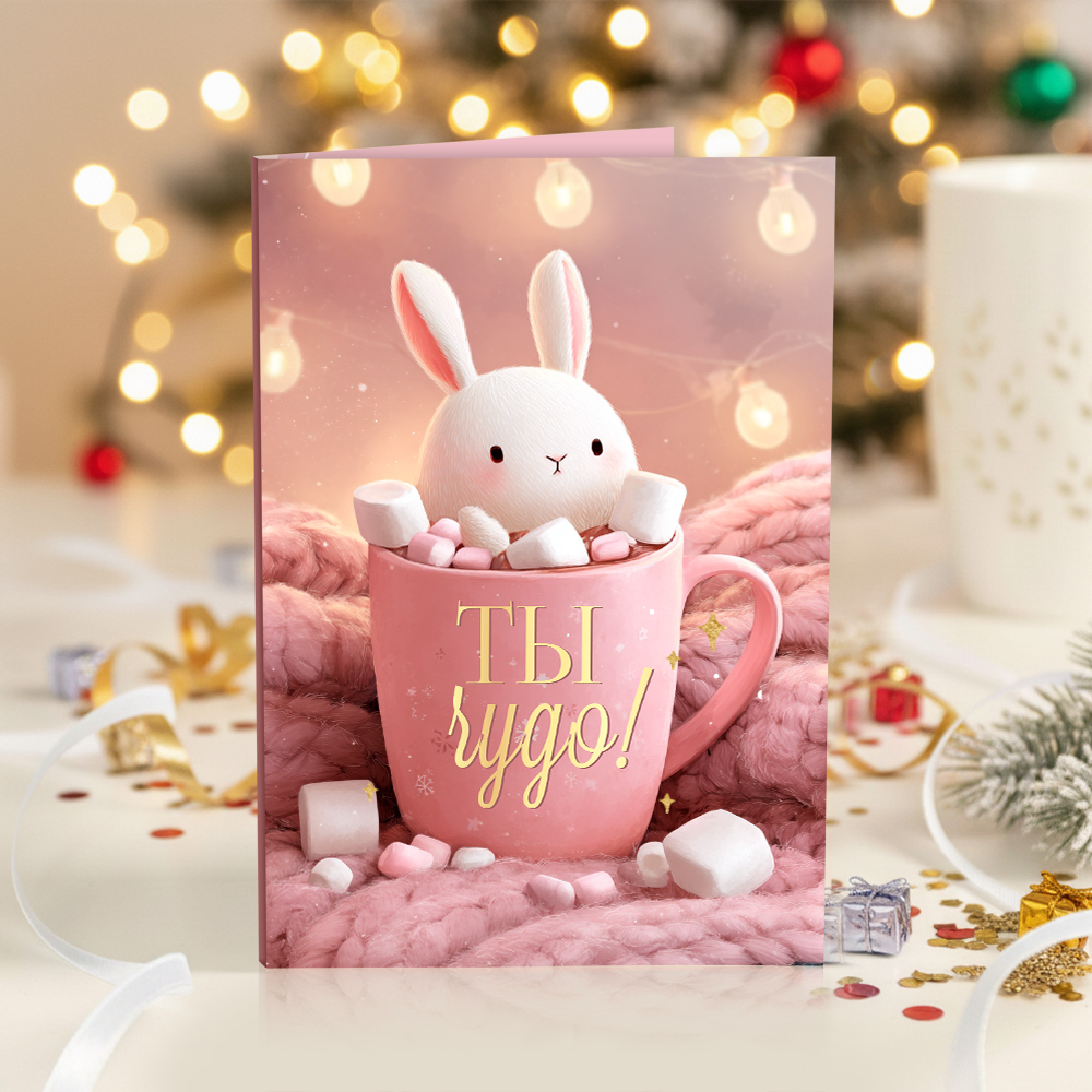 Открытка 4 шоколадки "Ты чудо (зайка в кружке)"