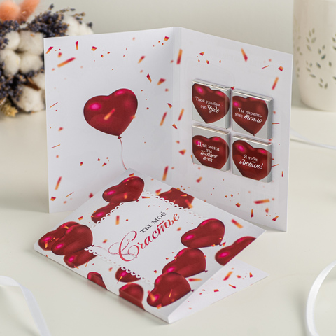 Отзывы и вопросы о товаре «Открытка 4 шоколадки "Ты мое счастье"»