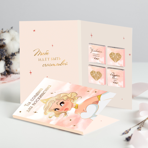 Открытка 4 шоколадки "Ты создана для восхищения"