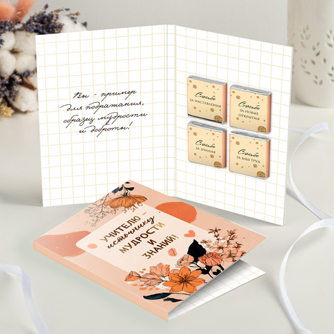 Открытка 4 шоколадки "Учителю - источнику мудрости и знаний"