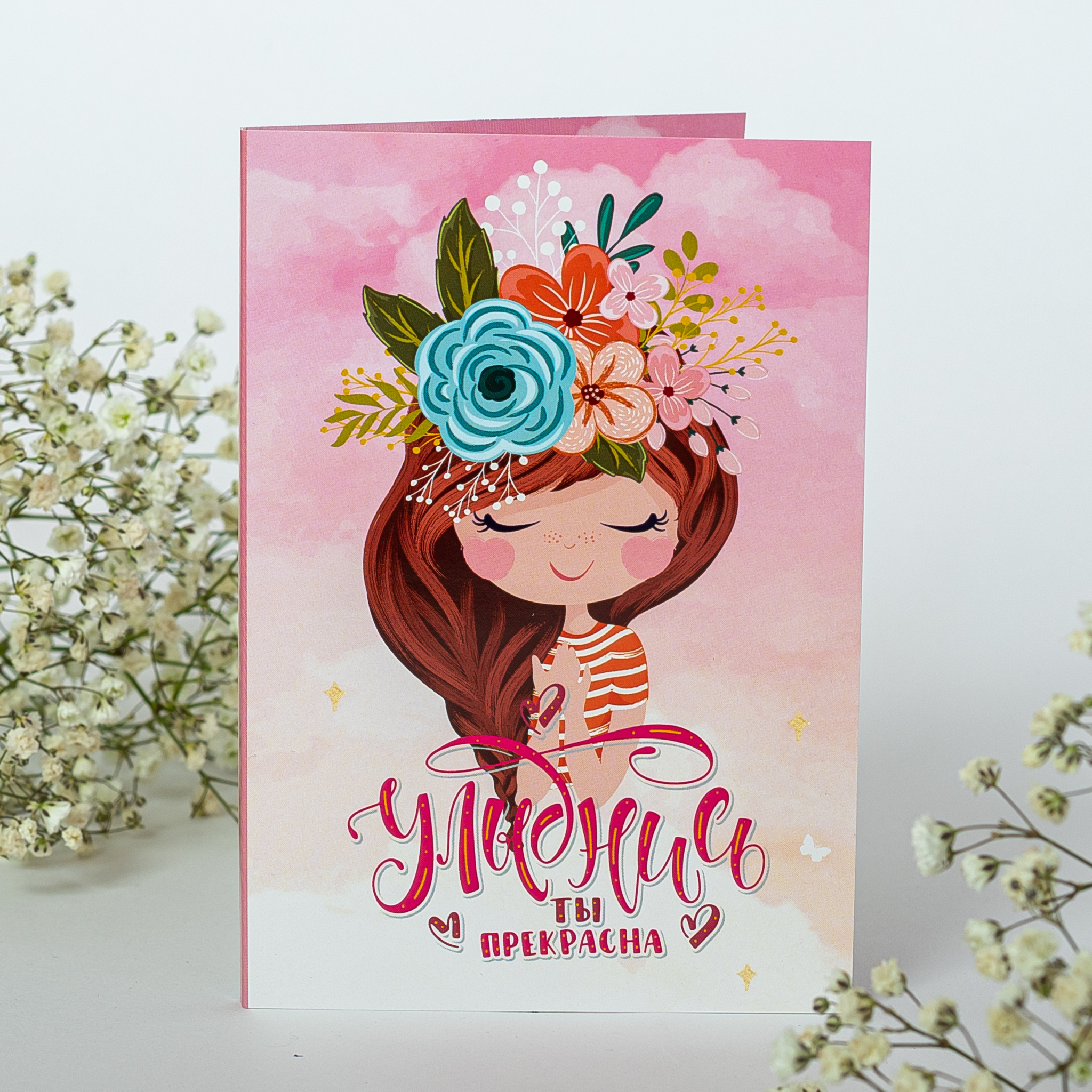 Открытка 4 шоколадки "Улыбнись, ты прекрасна"