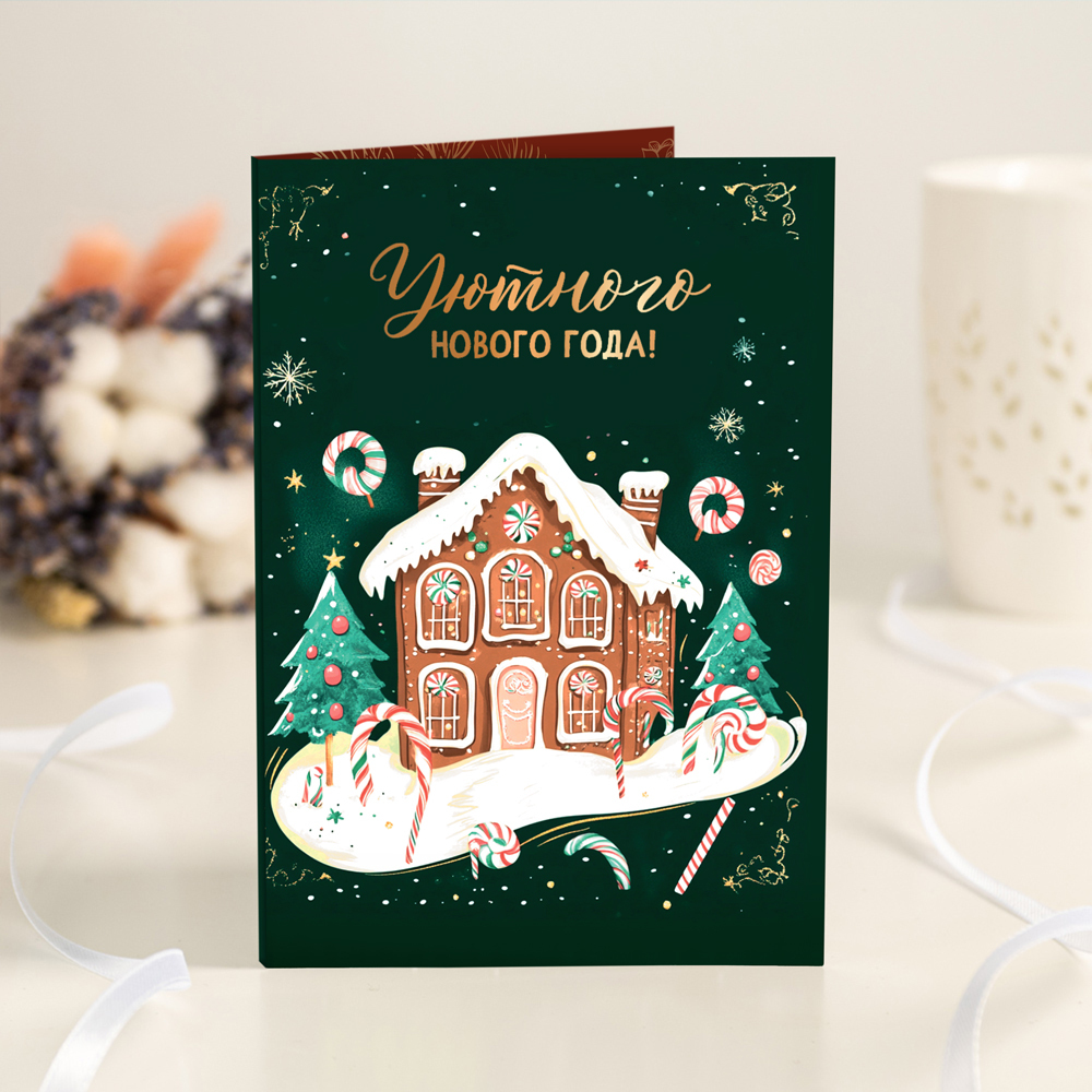 Открытка 4 шоколадки "Уютного Нового года! (пряничный домик)"