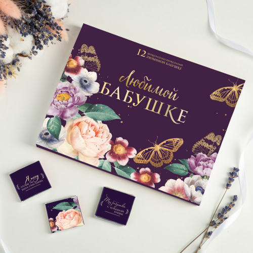 Каждая шоколадка упакована в индивидуальную этикетку с пожеланием.