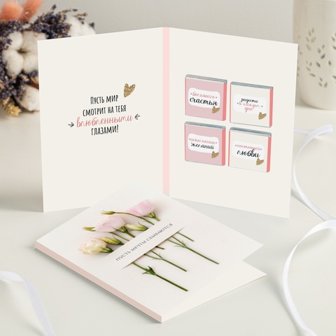 Открытка на 4 шоколадки "Пусть сбываются мечты"