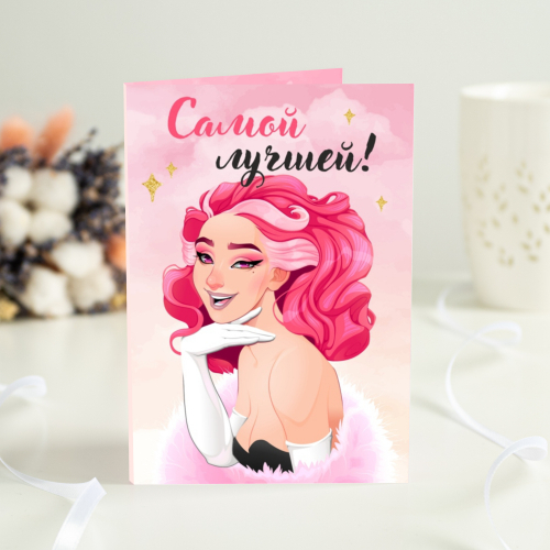 Открытка на 4 шоколадки "Самой прекрасной на свете"