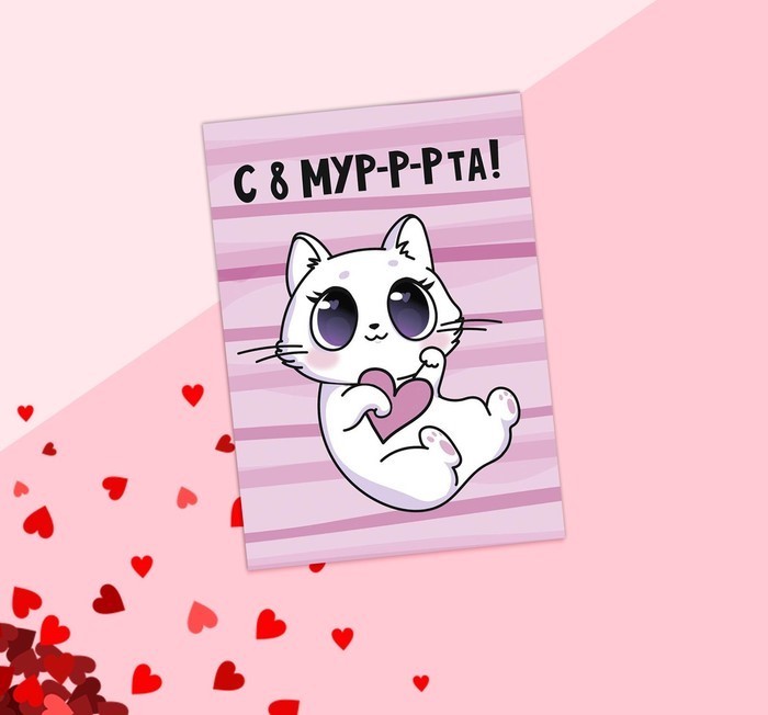 Открытка на каждый день «С 8 мурррта!» котик, 7.5 х 10 см