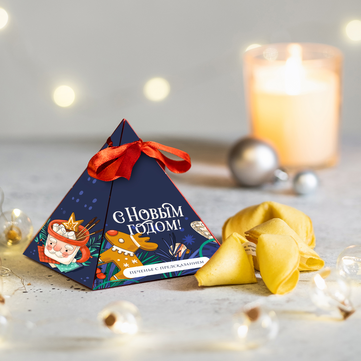 Печенье с предсказаниями "С Новым годом! (синий с дедом морозом и кружкой)", 3шт.