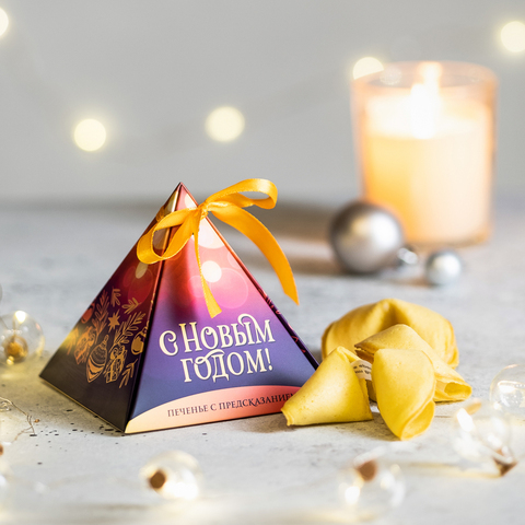 Печенье с предсказаниями "С Новым годом! (жёлто-фиолетовый)", 3шт.