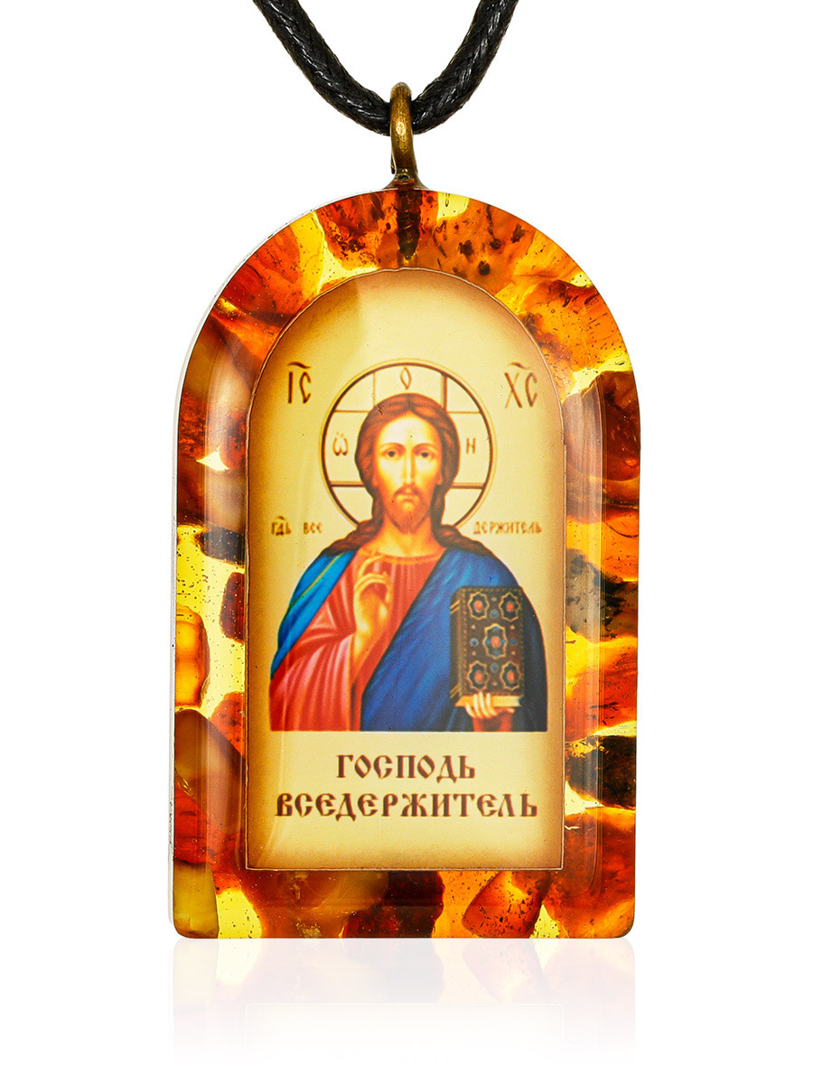 Подвеска-иконка «Спас» в янтарной оправе