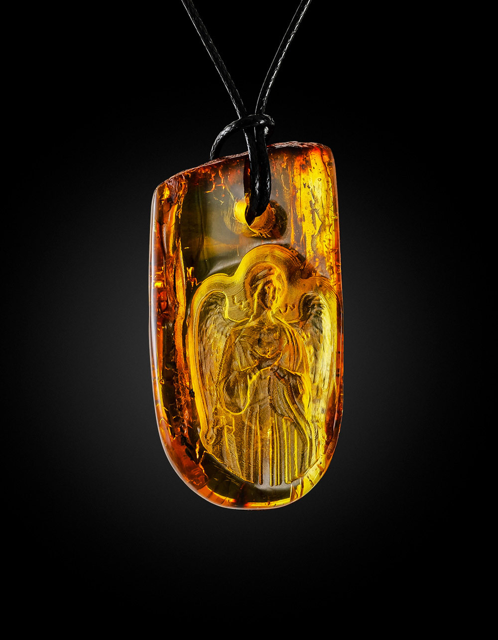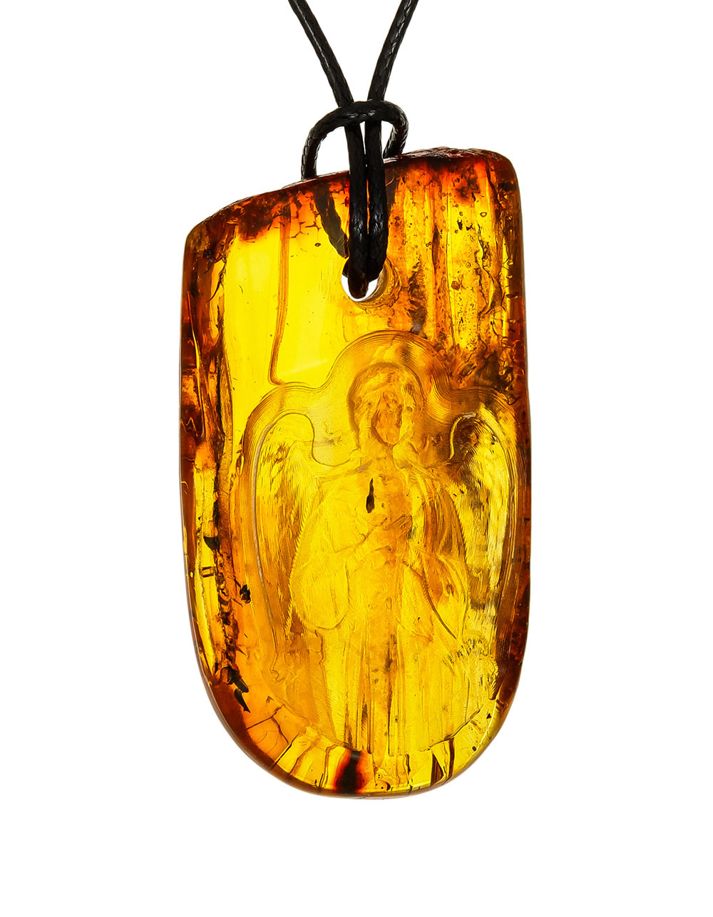 Подвеска из цельного балтийского янтаря с резьбой «Ангел-Хранитель»