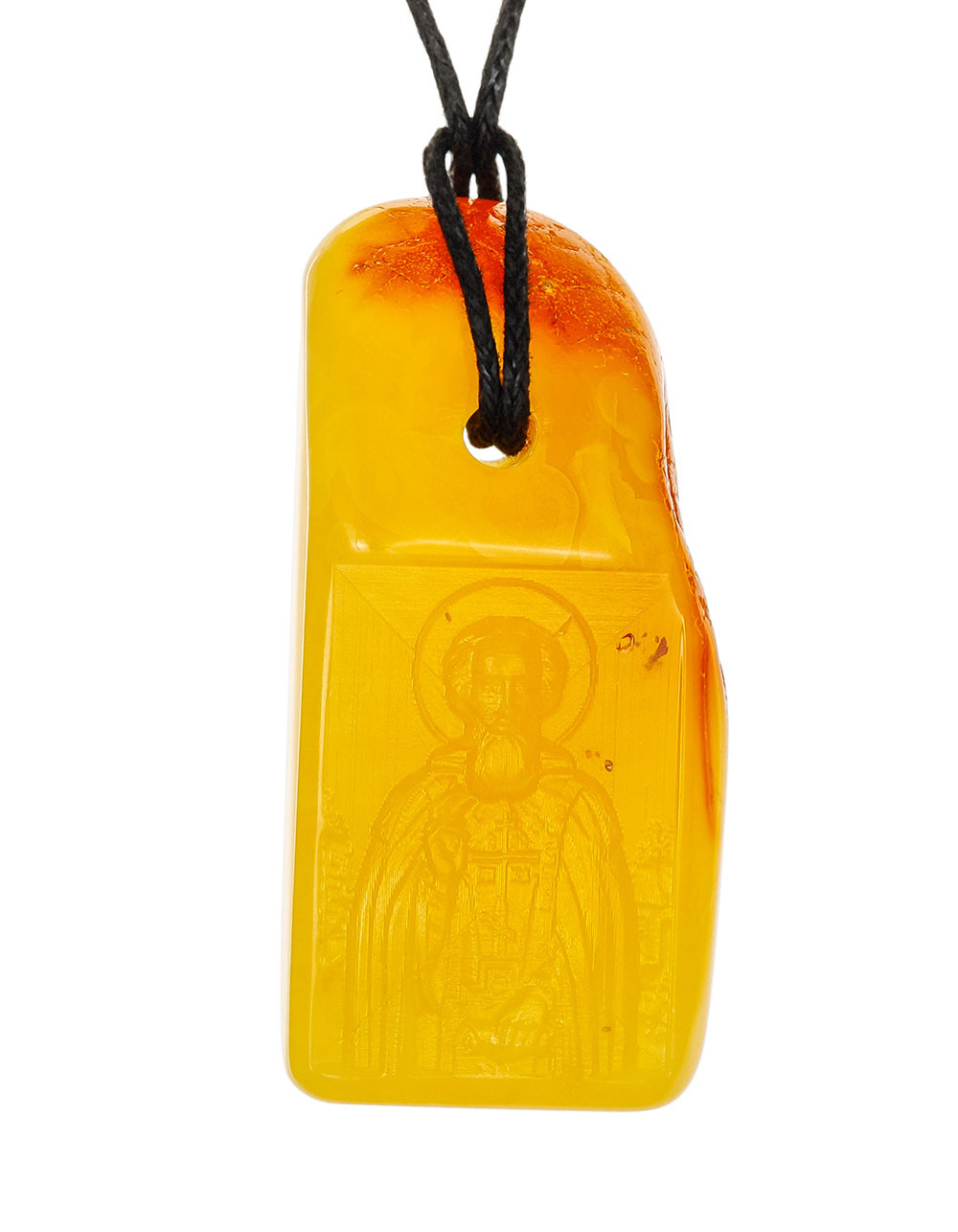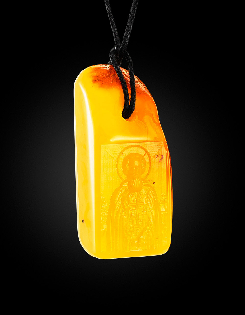 Подвеска из натурального цельного янтаря с резьбой «Николай Чудотворец»