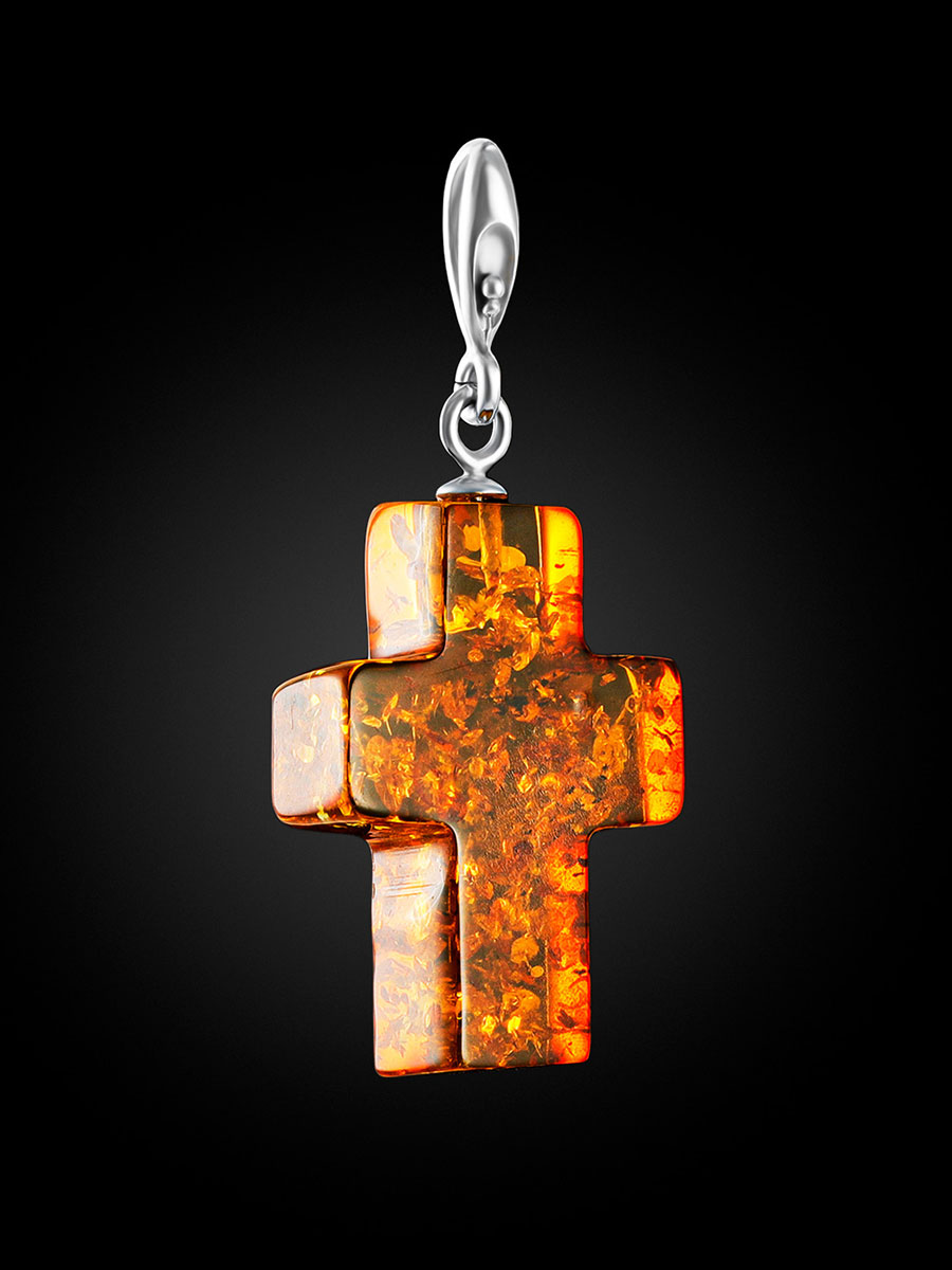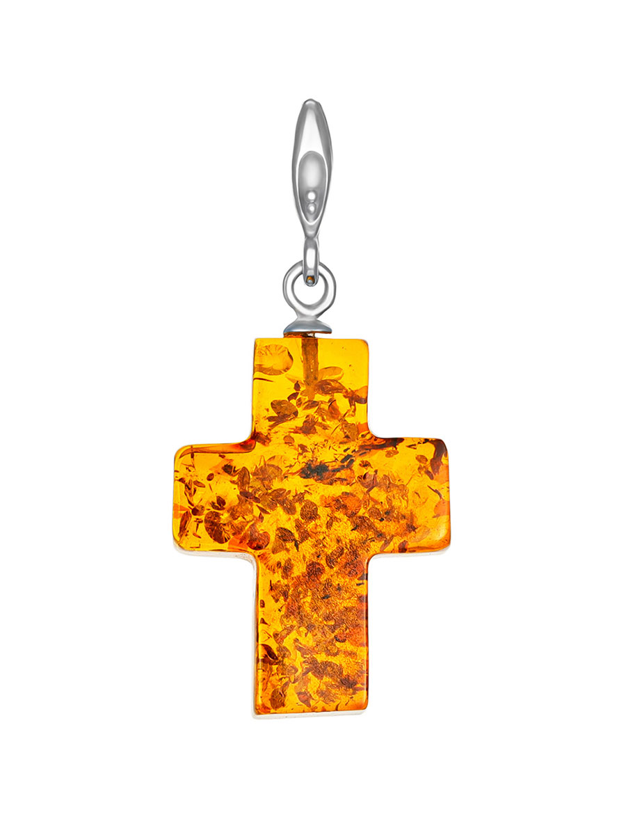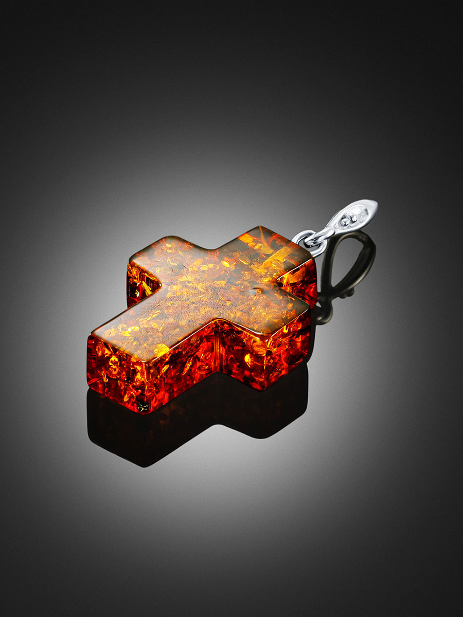 Подвеска из яркого натурального цельного янтаря «Крестик»
