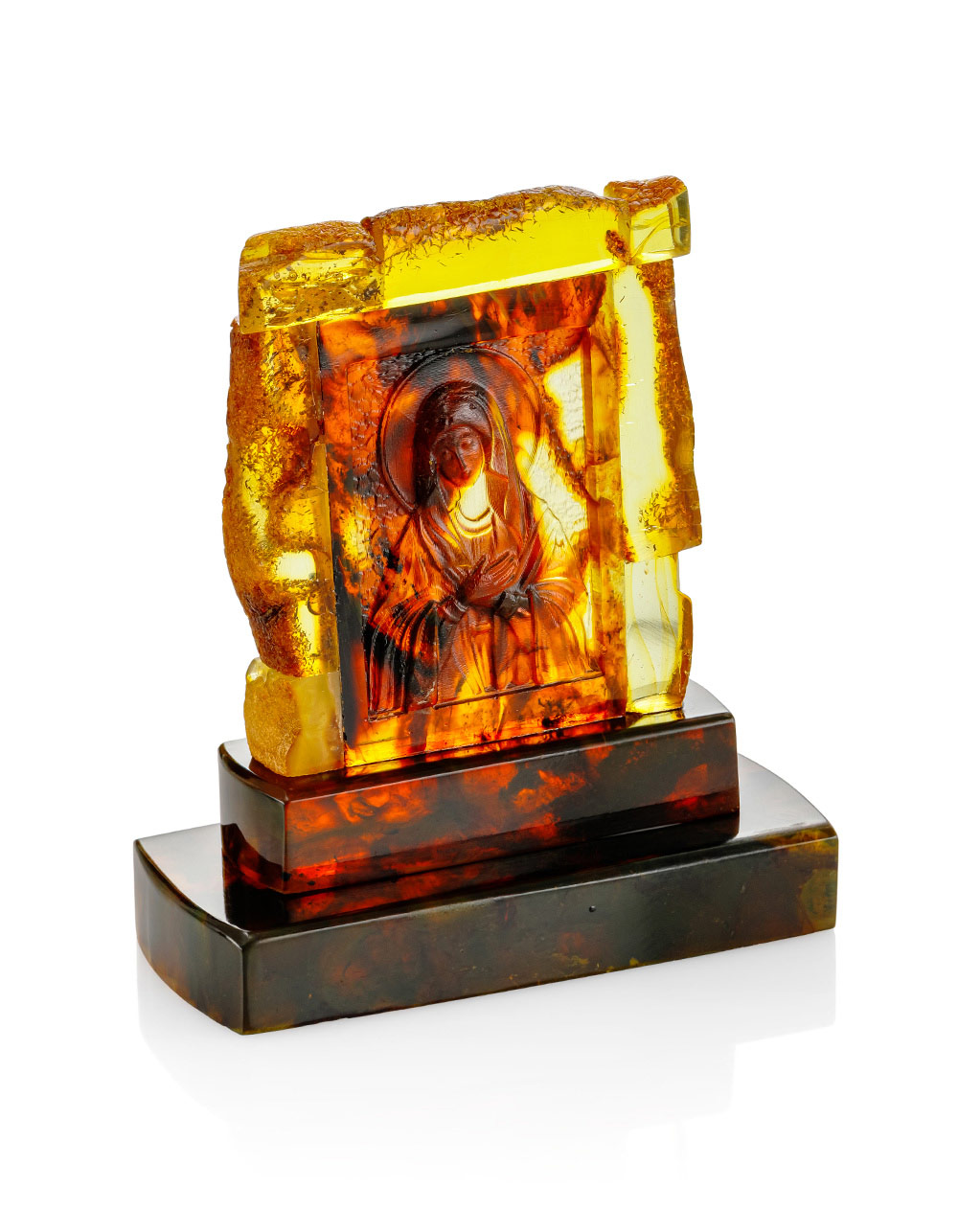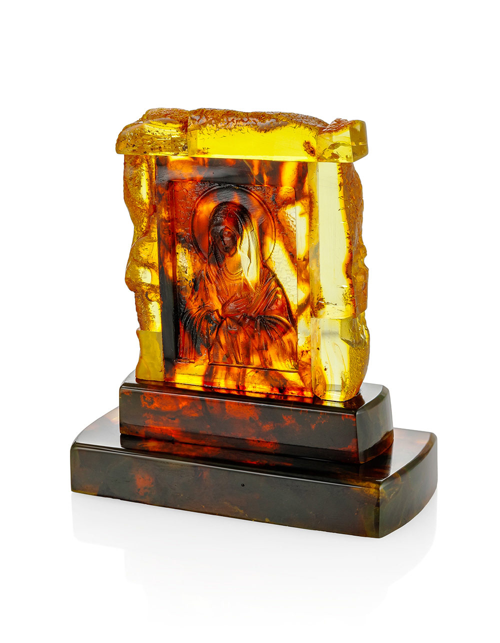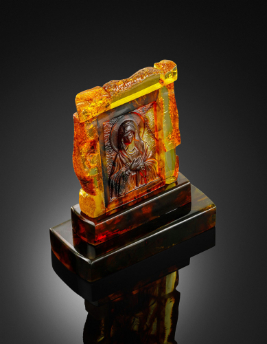 Резная икона из янтаря «Богородица. Умиление (Радость всех радостей)»