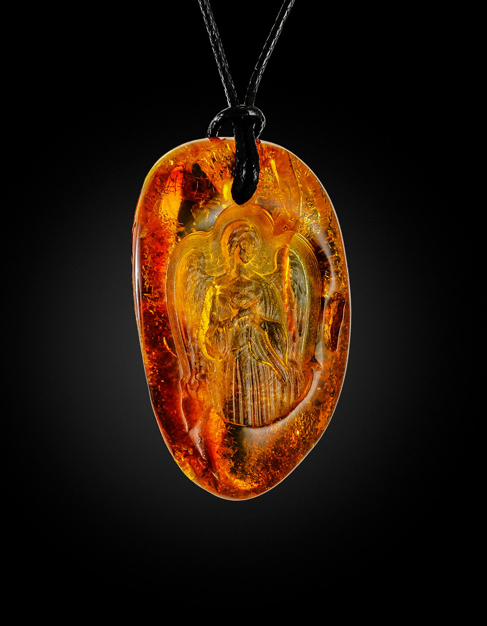 Резная подвеска из цельного янтаря «Ангел-Хранитель»