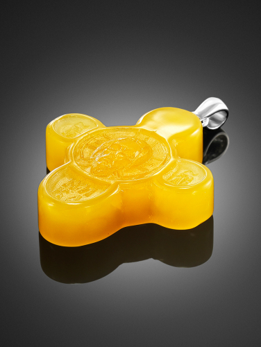 Резная подвеска «Крестик» из янтаря медового цвета