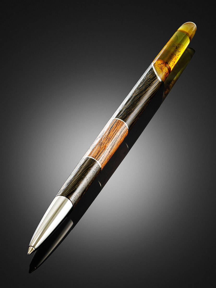Ручка авторской работы из дерева и балтийского янтаря лимонного цвета «Олливандер»