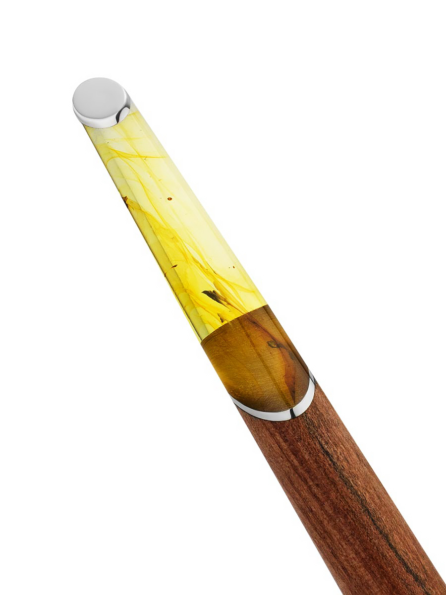 Ручка с выдвижным механизмом из дерева и натурального цельного балтийского янтаря «Олливандер»