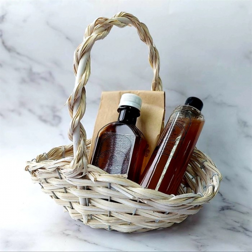 Вы получите корзину, которую видите на фото. Флаконы 250 мл и 200 мл приложены в демонстрационных целях. Вы можете наполнить корзинку самостоятельно, например заказав товары у нас.