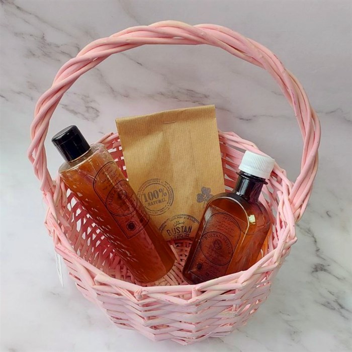 Вы получите корзину, которую видите на фото. Флаконы 250 мл и 200 мл приложены в демонстрационных целях. Вы можете наполнить корзинку самостоятельно, например заказав товары у нас.