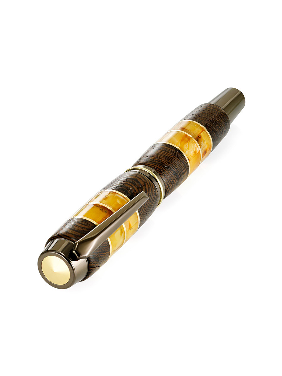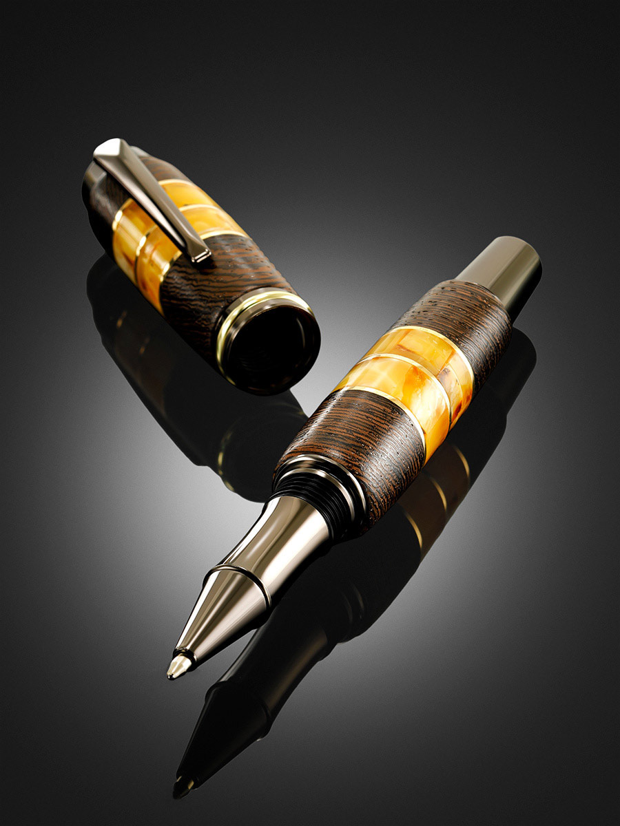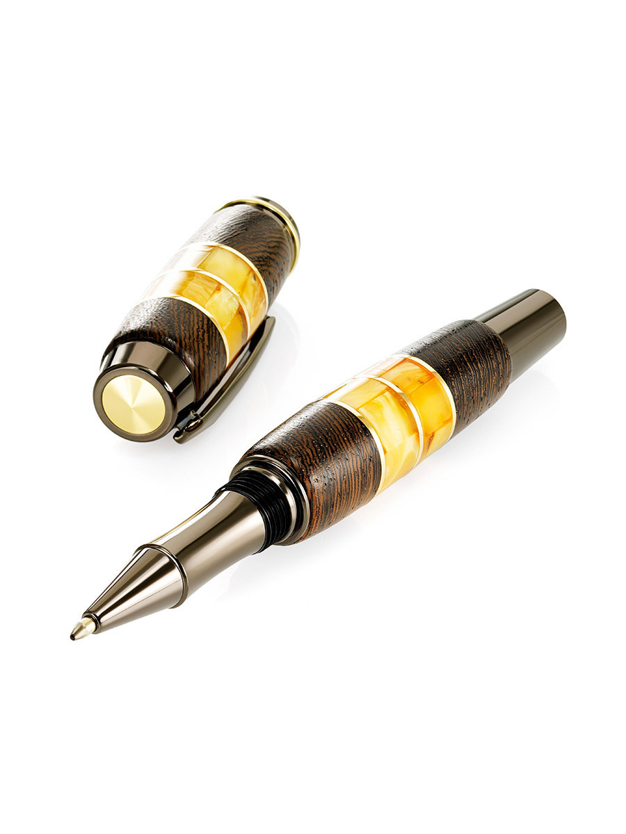 Шариковая ручка, созданная из древесины морёного дуба и натурального янтаря